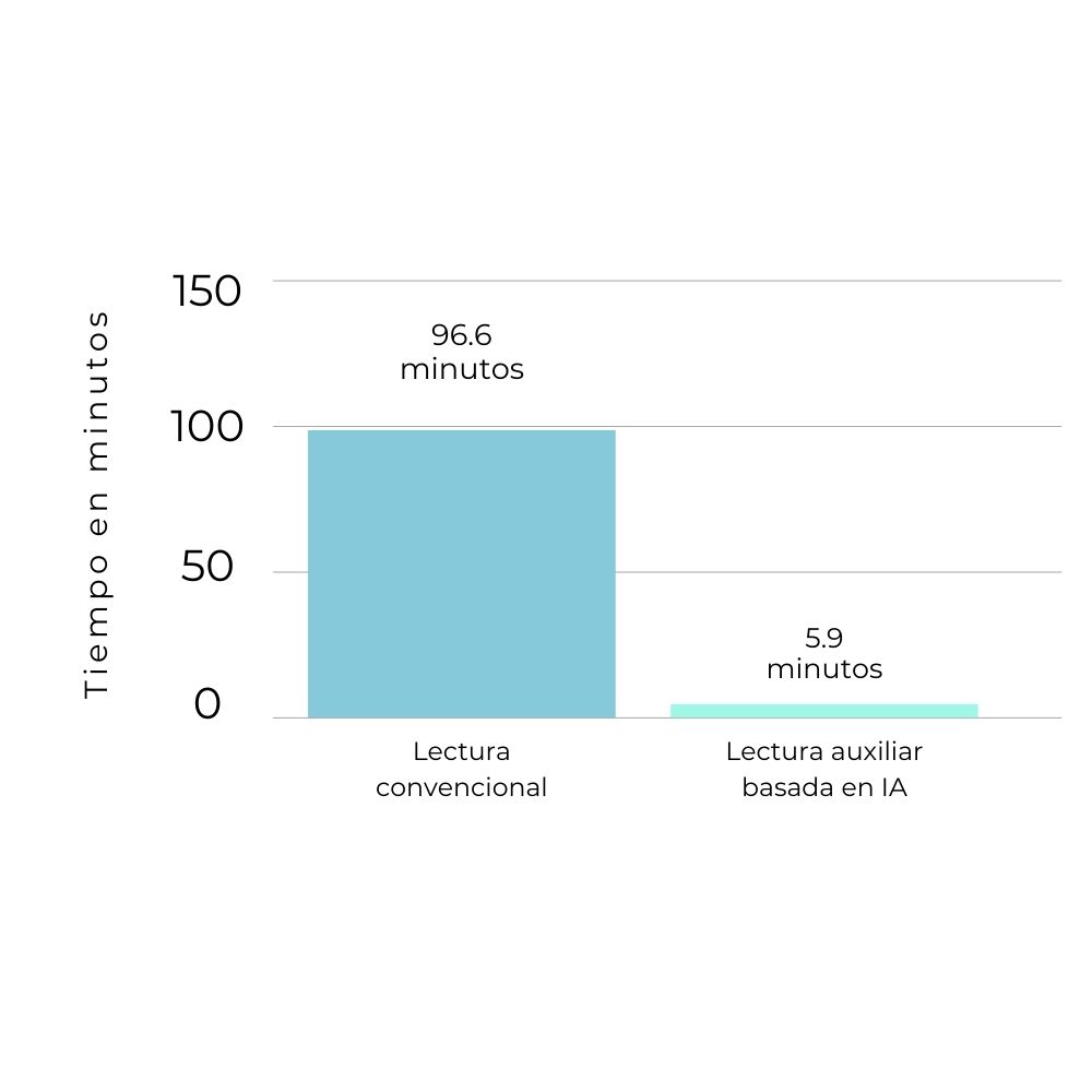 Reducción de Errores: Los lectores estándar omitieron el 21% de las lesiones significativas, en comparación con el 6.6% de los lectores asistidos por IA